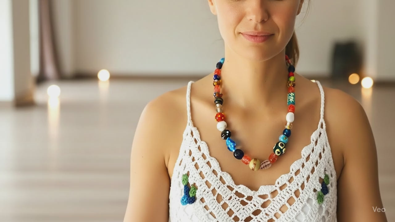 BaVITA’nın bütüncül yaşam yaklaşımıyla tasarlanan cam boncuk kolye; sadeliği, zarafeti ve doğal ışığı stiline taşımak isteyenler için.